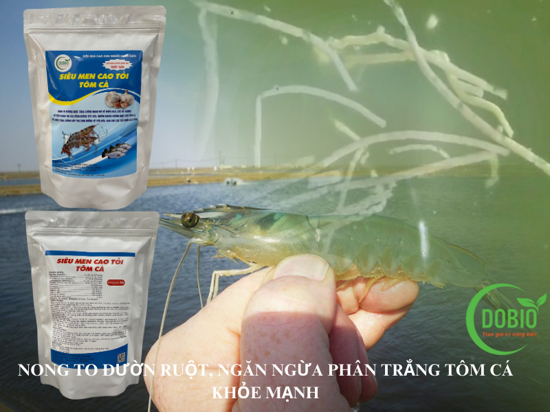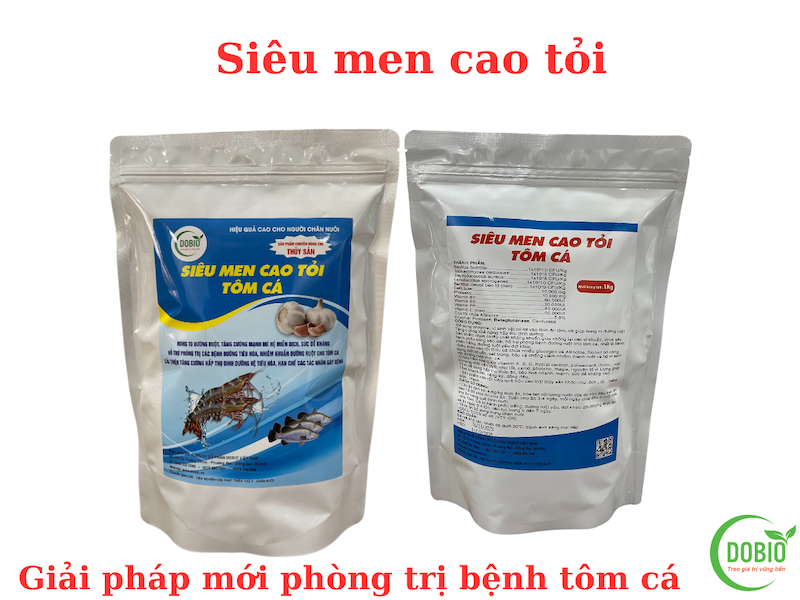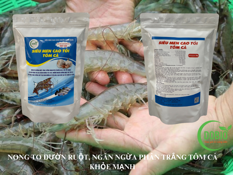 Sau khi thăm dò và khảo sát tình trạng của ao nuôi tôm của anh, chúng tôi đã đề xuất sử dụng sản phẩm siêu men cao tỏi của Công ty DOBIO VIỆT NAM. Đây là một sản phẩm bổ sung enzyme và vi sinh vật có lợi vào thức ăn tôm cá giúp tăng cường khả năng hấp thu dinh dưỡng, nâng cao sức đề kháng cho tôm cá, đồng thời hỗ trợ phòng bệnh đường ruột cho tôm cá, nhất là bệnh phân trắng, đường ruột yếu đứt khúc.