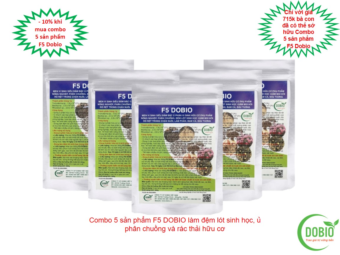 Combo 5 sản phẩm F5 Dobio dạng bột làm đệm lót sinh học, ủ