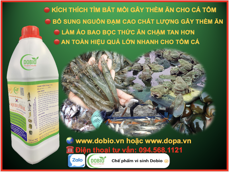 Chăn nuôi thủy sản không tránh khỏi việc vật nuôi bỏ ăn, sinh trưởng kém. Để tránh tình trạng đó kéo dài DOBIO Việt Nam giới thiệu đến quý bà con sản phẩm dầu gan mực SQUID LIVER OIL hỗ trợ kích thích hải sản tìm kiếm nguồn thức ăn và hấp thụ dinh dưỡng tối ưu nhất.