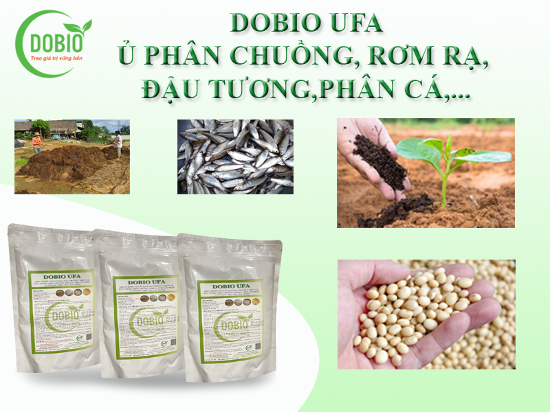 - Chế phẩm vi sinh DOBIO UFA dùng ủ đậu tương đỗ tương, bánh đầu làm bón cây trồng.