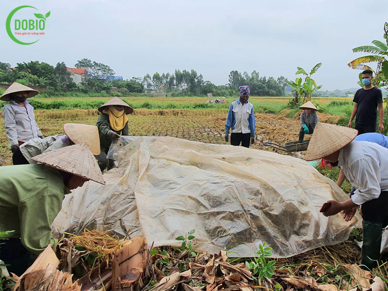 Hình ảnh ủ men vi sinh DOBIO UFA với rơm rạ.