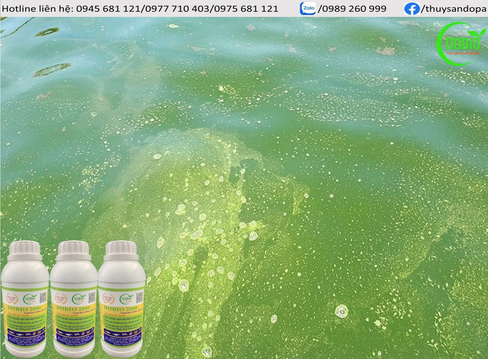 Bà con có thể sử dụng các loại men vi sinh như: Dobio Az, Dobio clean, Dobio sun, Chế phẩm EM-G,,,Đây là cách tự nhiên và thân thiện nhất để xử lý tảo xanh. Cách này dùng các vi sinh vật sống ăn các chất dinh dưỡng dư thừa (nitơ, phốt pho) của tảo. Thông thường, chúng là hỗn hợp đậm đặc của vi khuẩn và enzyme tự nhiên có khả năng phân hủy bùn nhanh chóng, cải thiện chất lượng nước, giảm chất hạt lơ lửng, chất rắn và kiểm soát mùi nếu được sử dụng đúng cách trong hỗn hợp thích hợp cho ao. Phương pháp này thành công vì ba lí do sau: