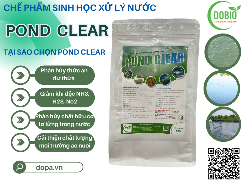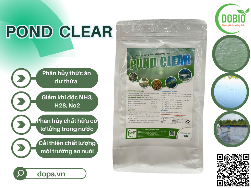 Với POND CLEAR, việc quản lý môi trường ao nuôi trở nên dễ dàng và hiệu quả hơn bao giờ hết. Bà con hãy sử dụng ngay chế phẩm Dobio để bảo vệ vụ nuôi của mình, tăng năng suất và lợi nhuận bền vững.