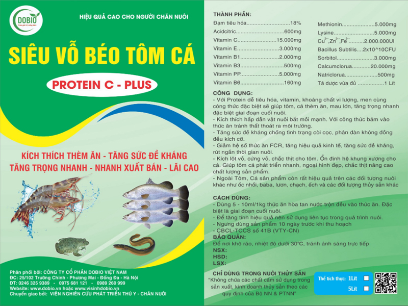 - Hãy để PROTEIN C - PLUS trở thành người bạn đồng hành tin cậy trong hành trình nuôi trồng thủy sản của bạn. Với khả năng siêu vỗ béo, sự phát triển hoàn hảo và chất lượng vượt trội, sản phẩm chắc chắn sẽ mang lại thành công và sự hài lòng cho bạn.