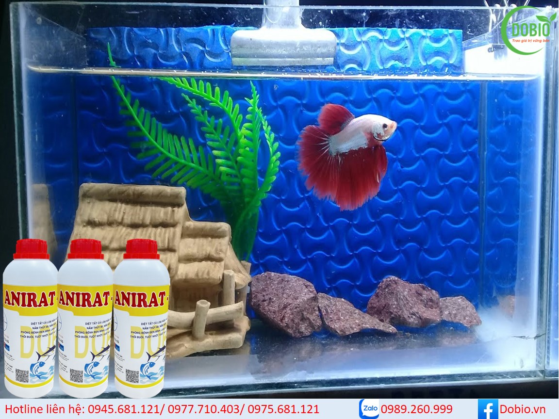 Bạn có thể điều trị cho cá bằng cách sử dụng sản phẩm ANIRAT pha cùng nước với liều lượng 1ml/40L nước rồi tắm cho cá.